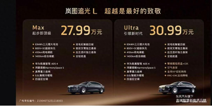 12月10日,岚图旗下全新旗舰轿车追光L迎来上市,售价27.99万起。继前不久的岚图空想家江山、岚图泰山之后,咱们不错从追光L这款车上,进一步看到岚图汽车在高端市集的居品实力,以及加快高端市集布局的决心。